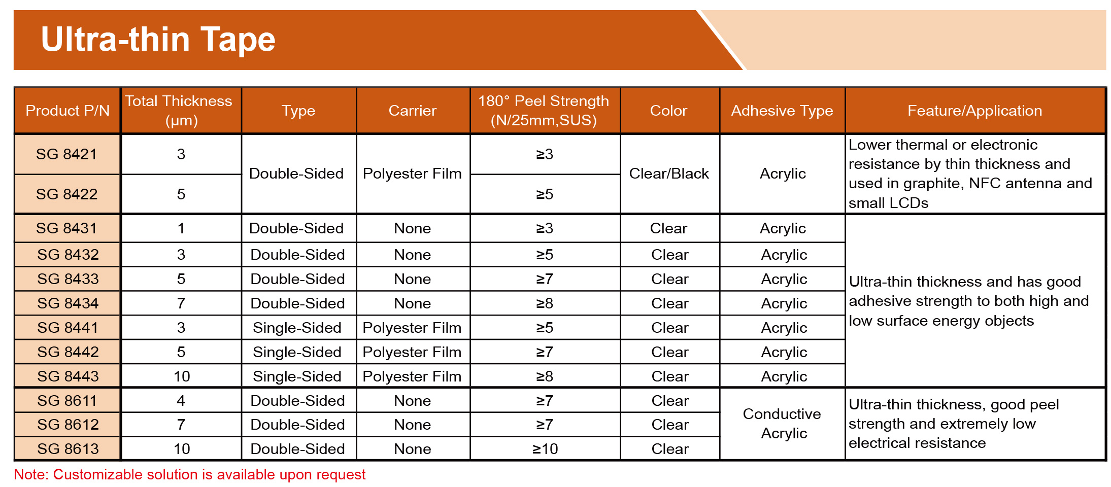 提供各种胶带,由PET、无纺布、泡沫、涂有丙烯酸、硅树脂、橡胶、热熔、热转化粘合剂的PI基材制成。可提供各种宽度、长度和释放衬垫,以满足特定需求,专为工业、商业和家庭应用的特殊环境而设计。
