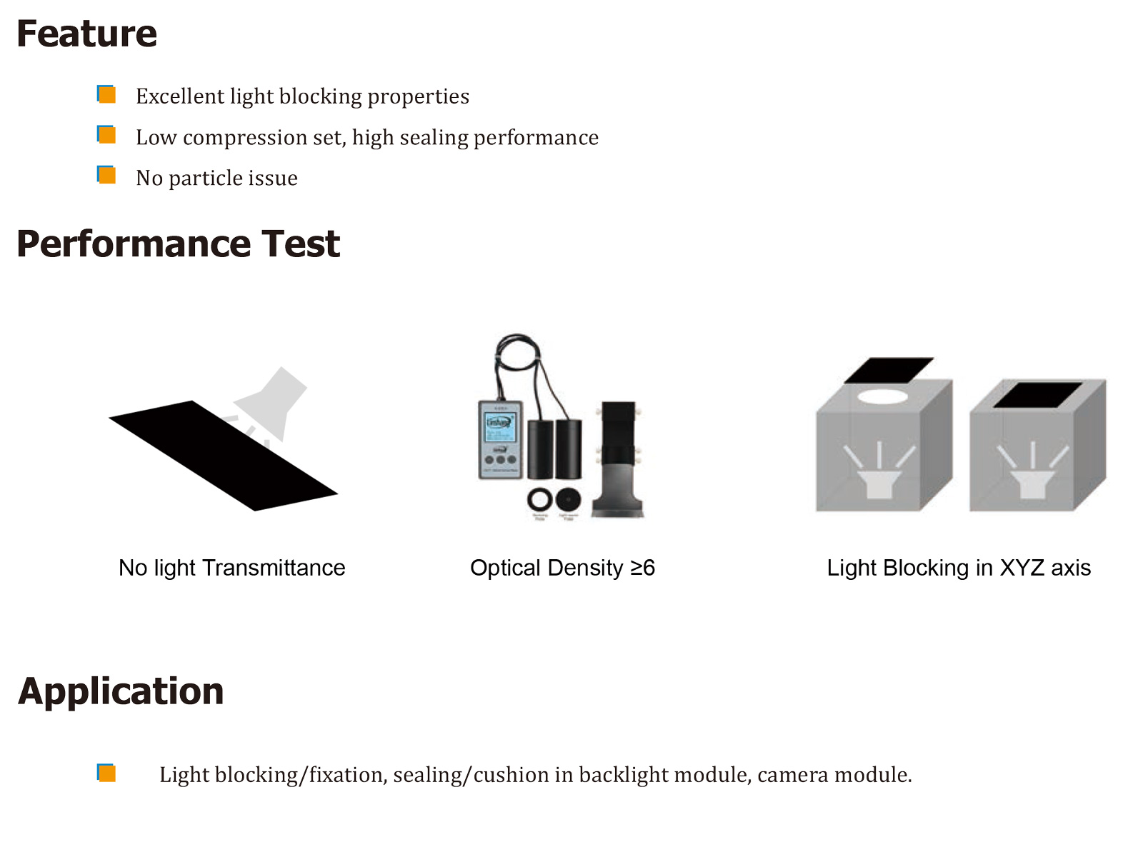 TM PF-S3B系列泡棉是一种中等柔软、快速回弹的泡棉,带有黑色PET基底,用于电子设备应用中的遮光、缓冲、保护性密封和长期间隙填充。PF-S3B系列泡棉具有极低的压缩永久变形率、高密封性能和优异的冲击吸收性能。" />